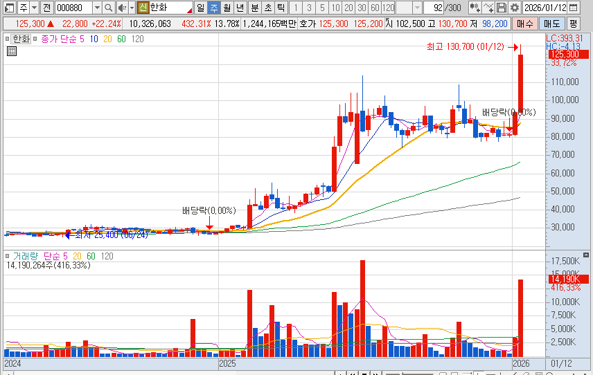 | 핵심 상승 재료 | K-방산 글로벌 수주 확대 및 태양광 흑자 전환 | 수주 잔고 역대 최대 |